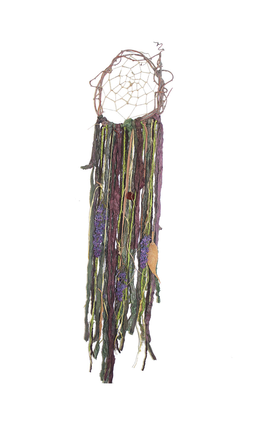 Dream catchers are something new for me that I am really enjoying making. What I love most about them, is the combination of textures, fibers, and nature. I love the process of gathering together all the bits and pieces of what I find inspiring at the moment, and using them to create a piece of art. I made this 6″ dream catcher over the weekend. It is inspired by the month of May, the scent of lilacs in the air, and blooming wisteria.
