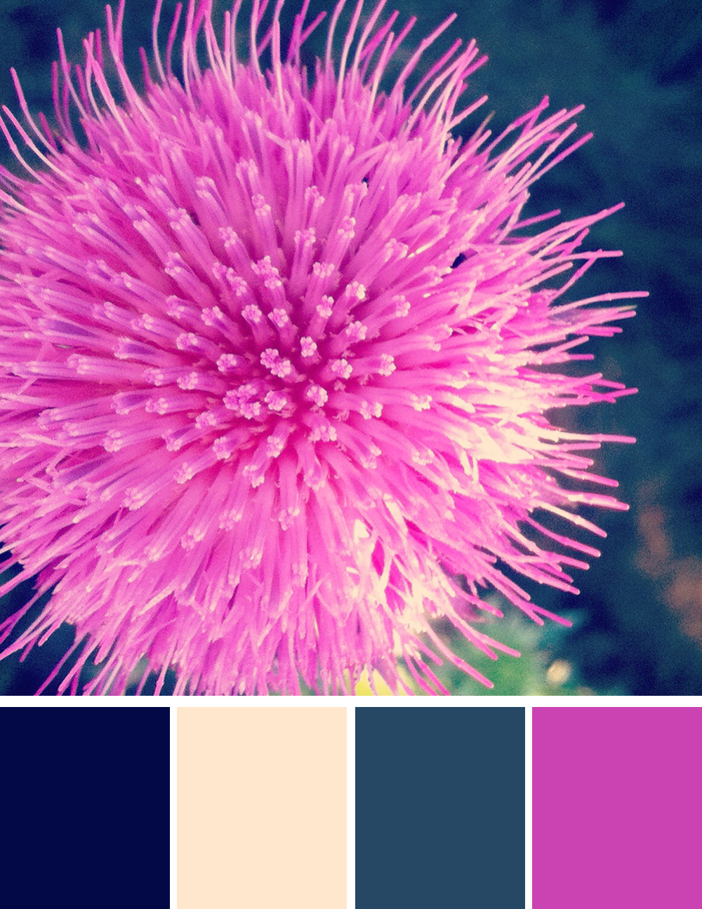 Posted on September 11, 2013September 4, 2013 by carriebeacheyColor Scouting: Thistle Blossom Today, I have a bonus color scheme for you to enjoy. This little thistle plant was quite photogenic! What is color scouting? Share this: Click to share on X (Opens in new window) X Click to share on Facebook (Opens in new window) Facebook Click to share on Pinterest (Opens in new window) Pinterest Like Loading... Related