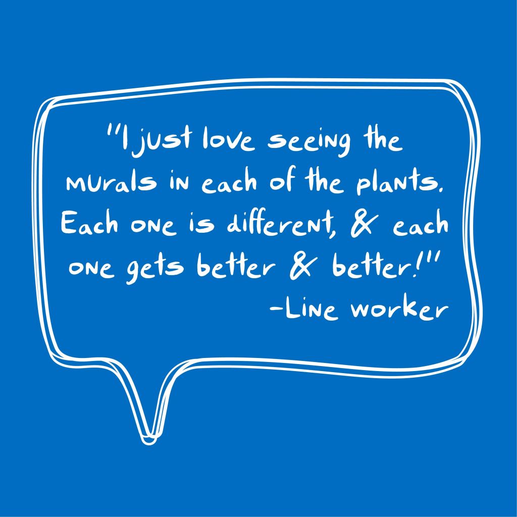 By inviting employees into the creative process, the murals became more than just artworkโthey became a source of pride, team-building, and ownership across the plants.
