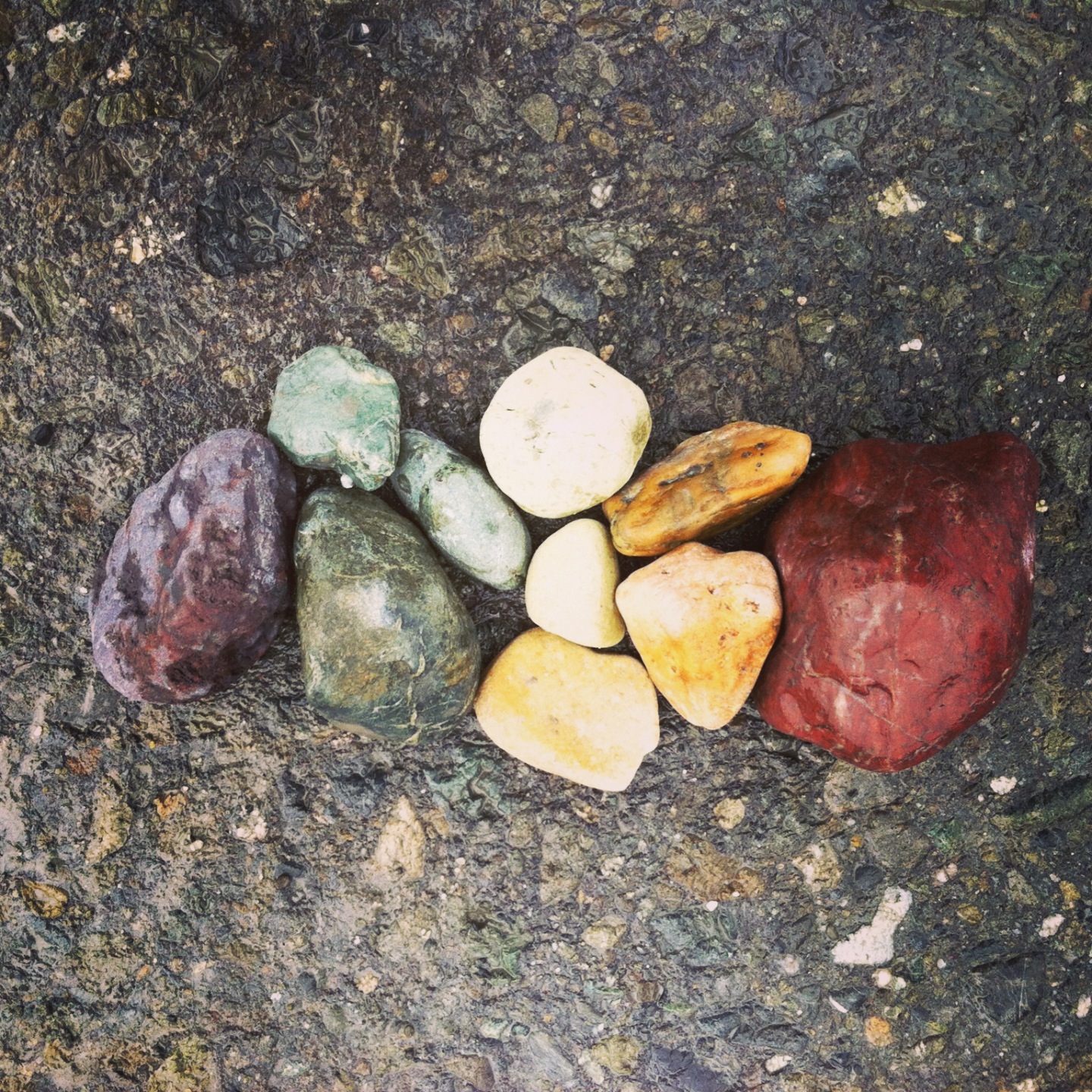 beach rocksAs I walk the shores, my mind just swims with ideas of things to make. “This could be an awesome necklace”, “These should be tied into a dream catcher”, “This is so straight, it could be added to a weaving”.  I collected quite a pile of colorful goodies before my kids were done.