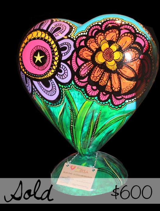 The unveiling of the hearts will be next Tuesday morning. I look forward to seeing all of the other hearts. I am interested to see how the other artists decorated their hearts. The hearts will be on display around the area in the next week or so. I can’t wait!